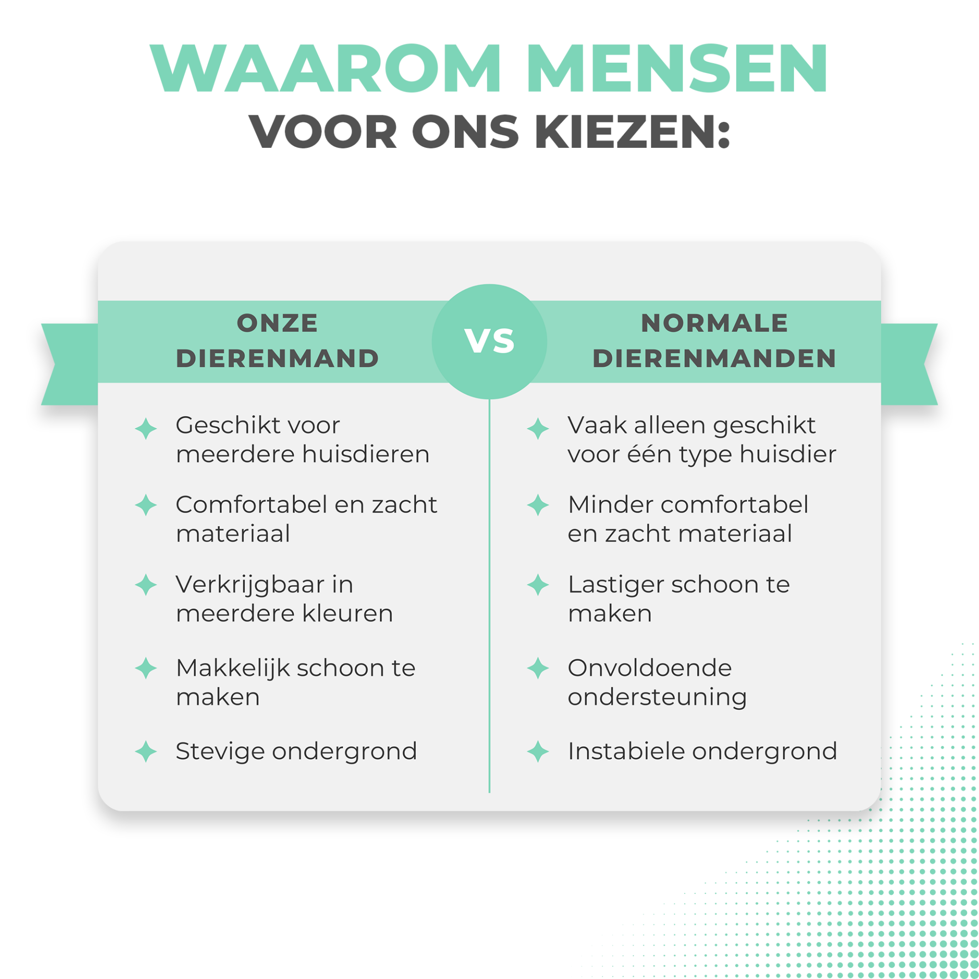 Deze dierenmand is geschikt voor zowel honden als katten. Zo hoef je geen aparte slaapplaatsen te kopen voor verschillende huisdieren en bespaar je ruimte in huis. Door de afmeting van 60 cm is de mand ideaal voor kleine tot middelgrote huisdieren.