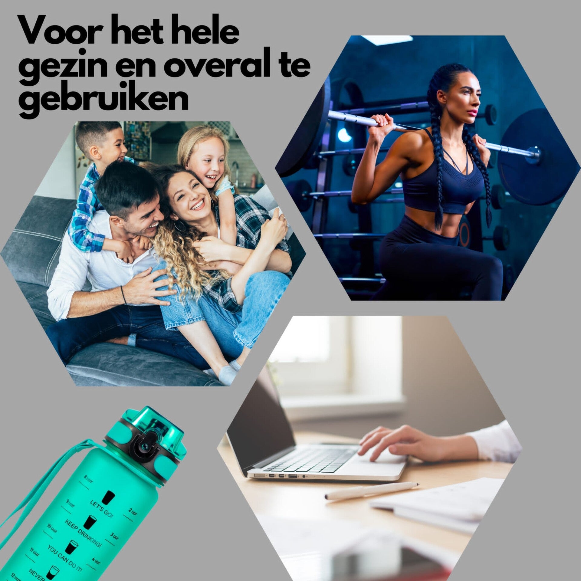 Een motiverende waterfles met een inhoud van 1 liter is niet alleen een praktische watercontainer, maar ook een inspirerende gadget die bedoeld is om je te ondersteunen en motiveren bij het behouden van een gezonde levensstijl en het regelmatig hydrateren van je lichaam door voldoende water te drinken.