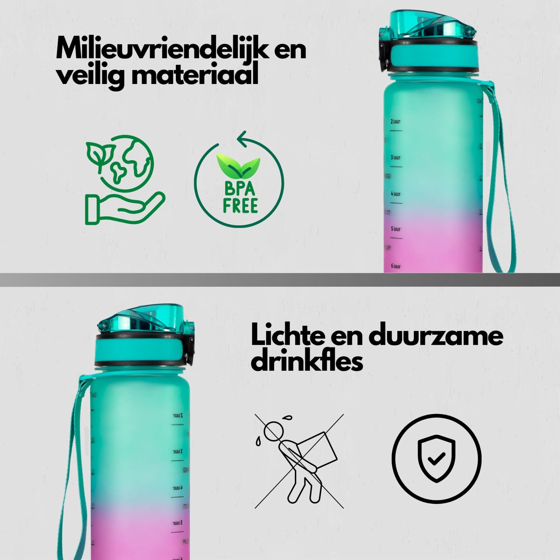 Een motiverende waterfles met een inhoud van 1 liter is niet alleen een praktische watercontainer, maar ook een inspirerende gadget die bedoeld is om je te ondersteunen en motiveren bij het behouden van een gezonde levensstijl en het regelmatig hydrateren van je lichaam door voldoende water te drinken.