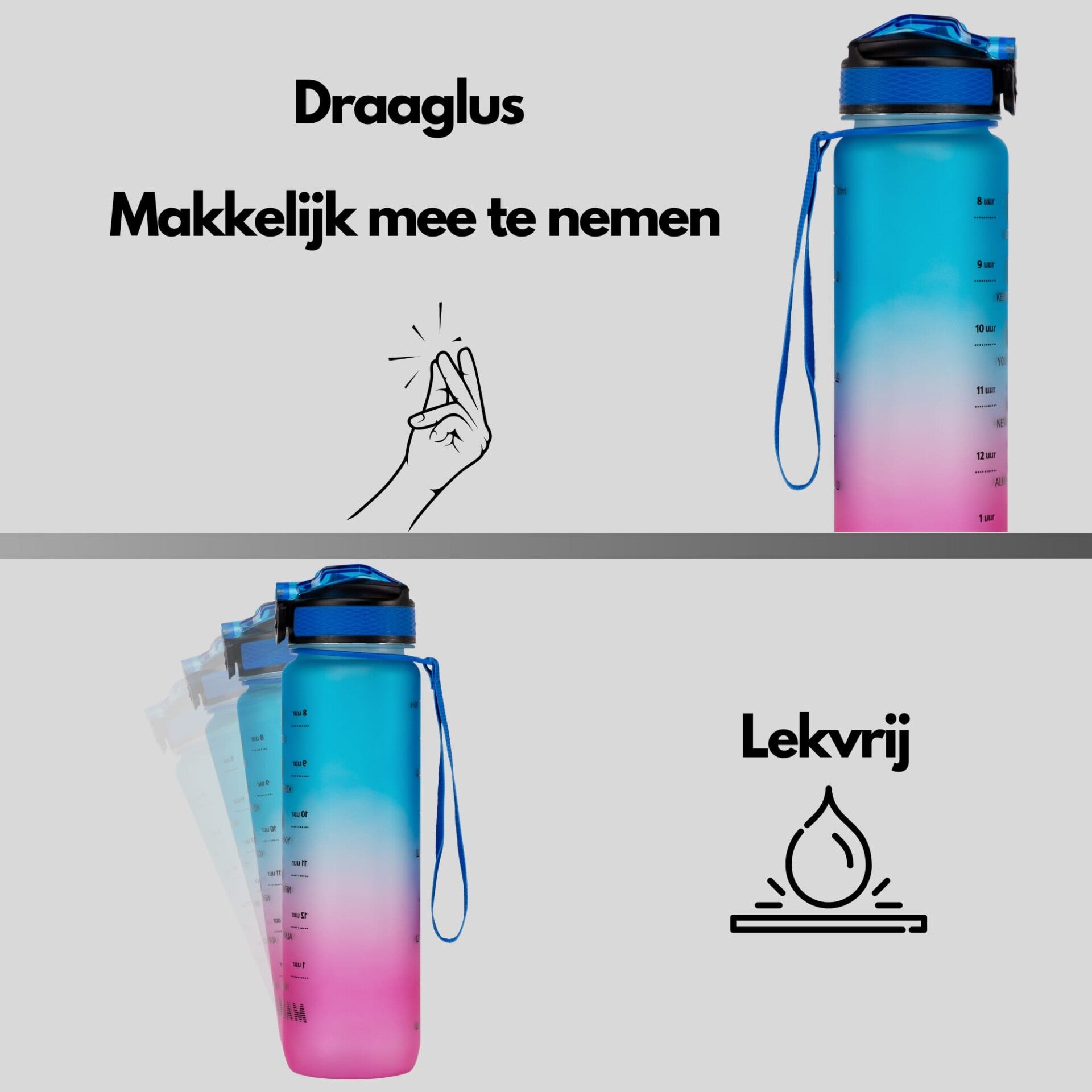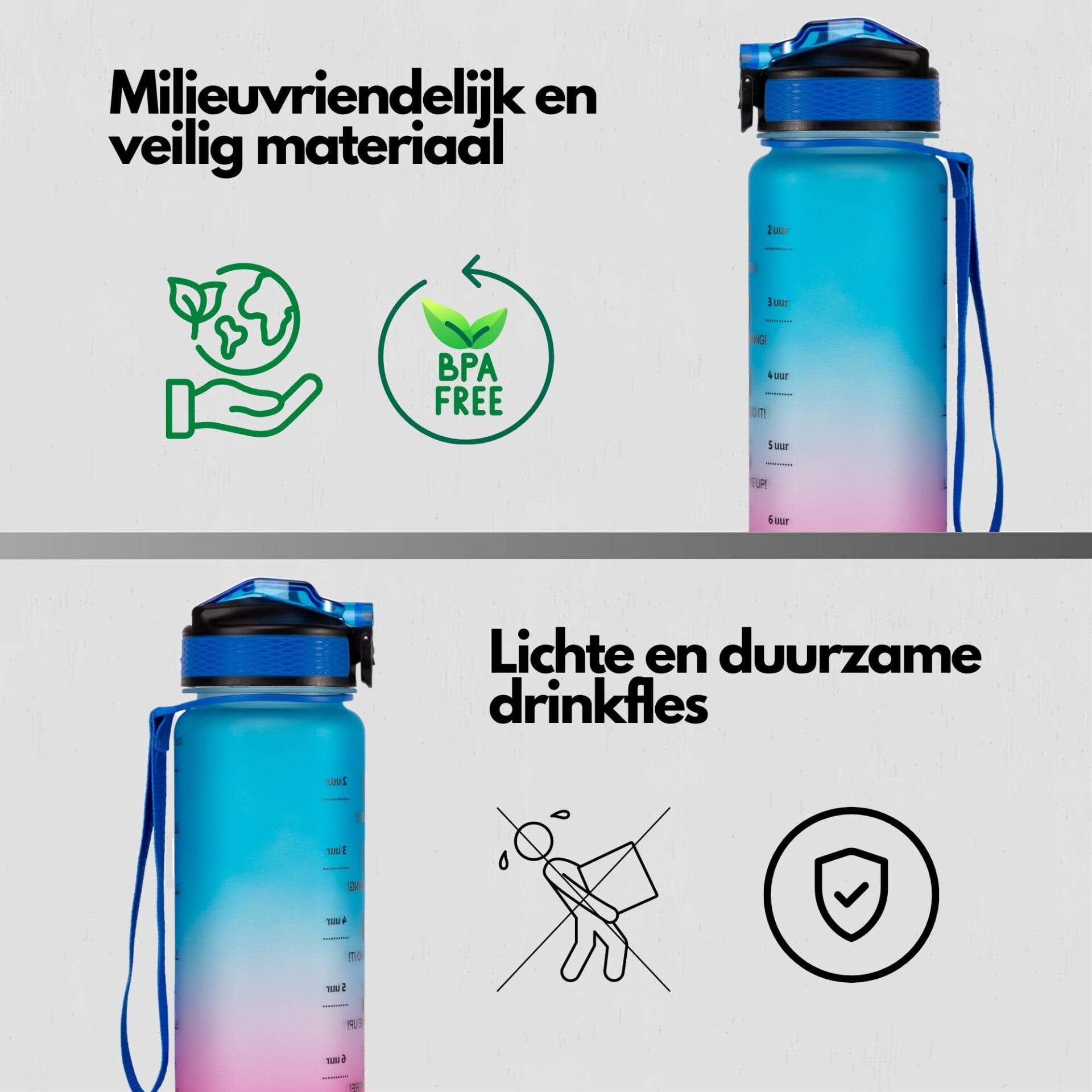 Een motiverende waterfles met een inhoud van 1 liter is niet alleen een praktische watercontainer, maar ook een inspirerende gadget die bedoeld is om je te ondersteunen en motiveren bij het behouden van een gezonde levensstijl en het regelmatig hydrateren van je lichaam door voldoende water te drinken.