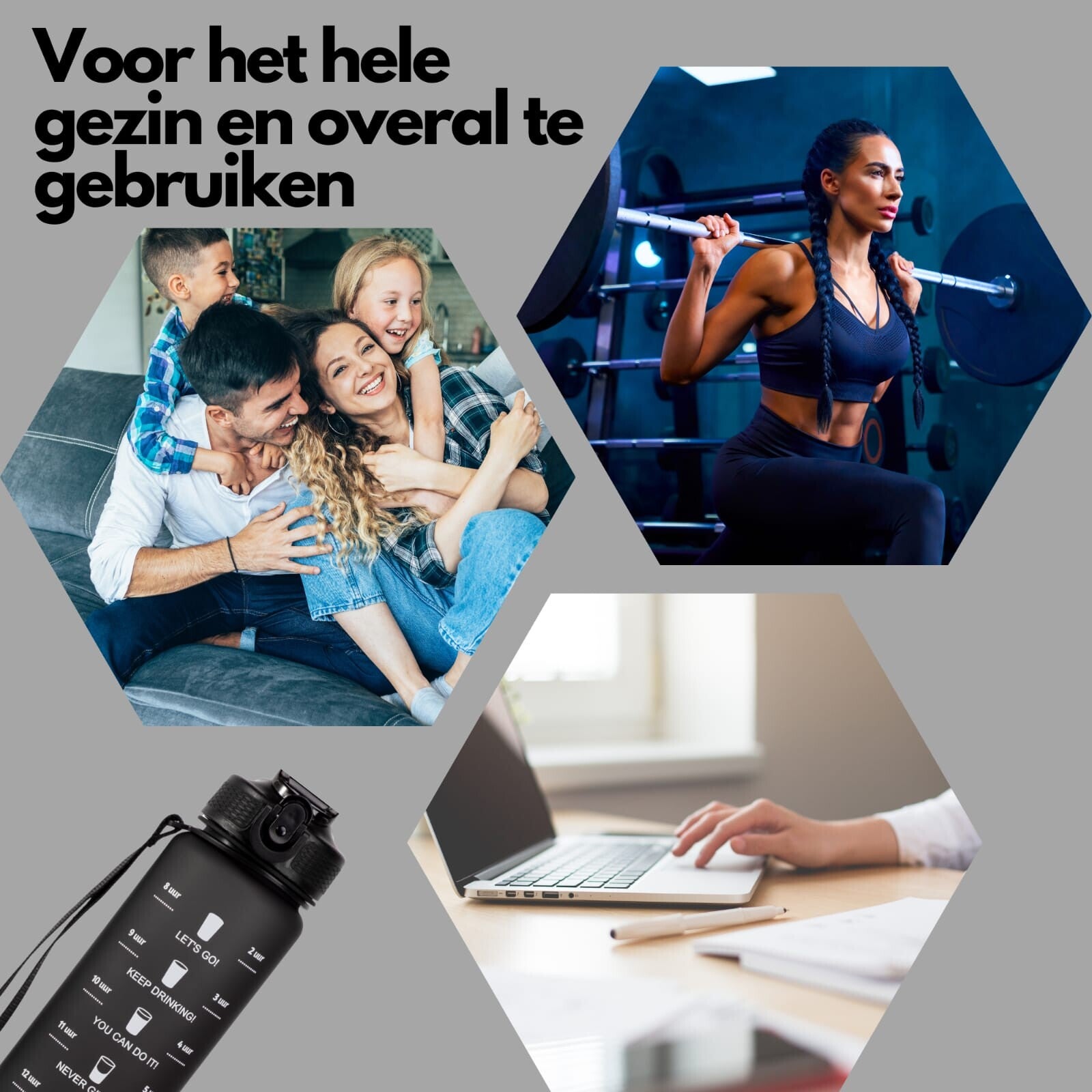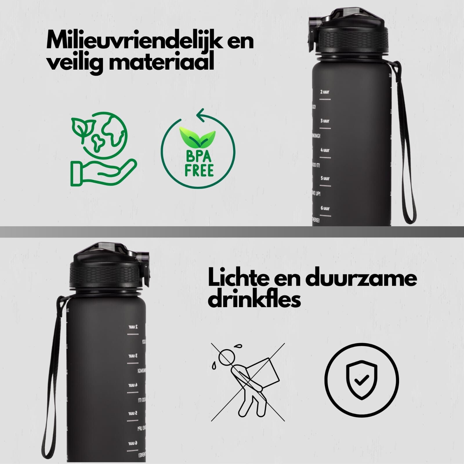 Een motiverende waterfles met een inhoud van 1 liter is niet alleen een praktische watercontainer, maar ook een inspirerende gadget die bedoeld is om je te ondersteunen en motiveren bij het behouden van een gezonde levensstijl en het regelmatig hydrateren van je lichaam door voldoende water te drinken.